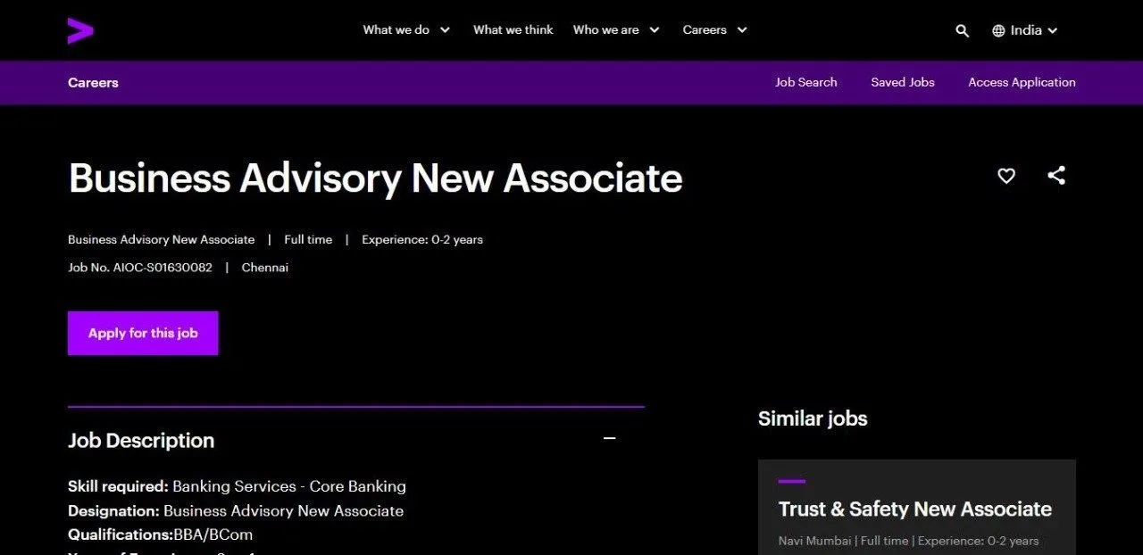 APPLY LINK – https://www.accenture.com/in-en/careers/jobdetails?id=AIOC-S01630082_en&title=Business+Advisory+New+Associate&SRC=RECNau