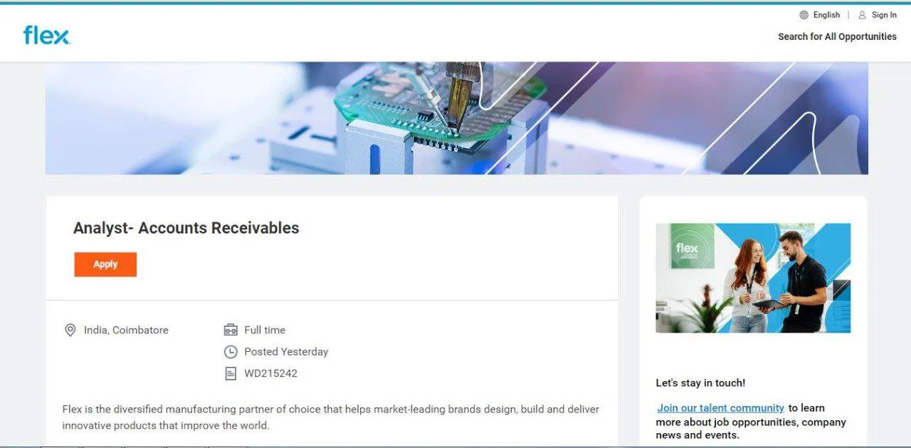 APPLY LINK- https://flextronics.wd1.myworkdayjobs.com/en-US/Careers/job/India-Coimbatore/Analyst–Accounts-Receivables_WD215242