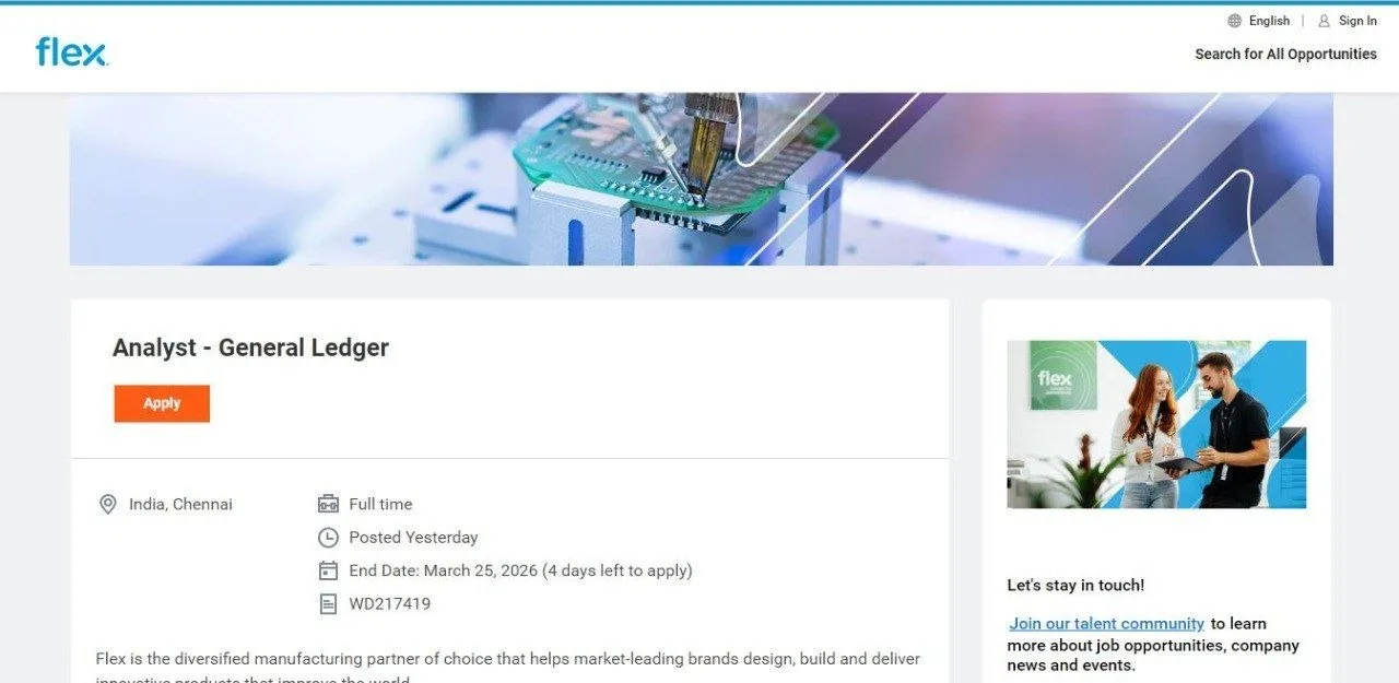 APPLY LINK – https://flextronics.wd1.myworkdayjobs.com/Careers/job/India-Chennai/Analyst—General-Ledger_WD217419/